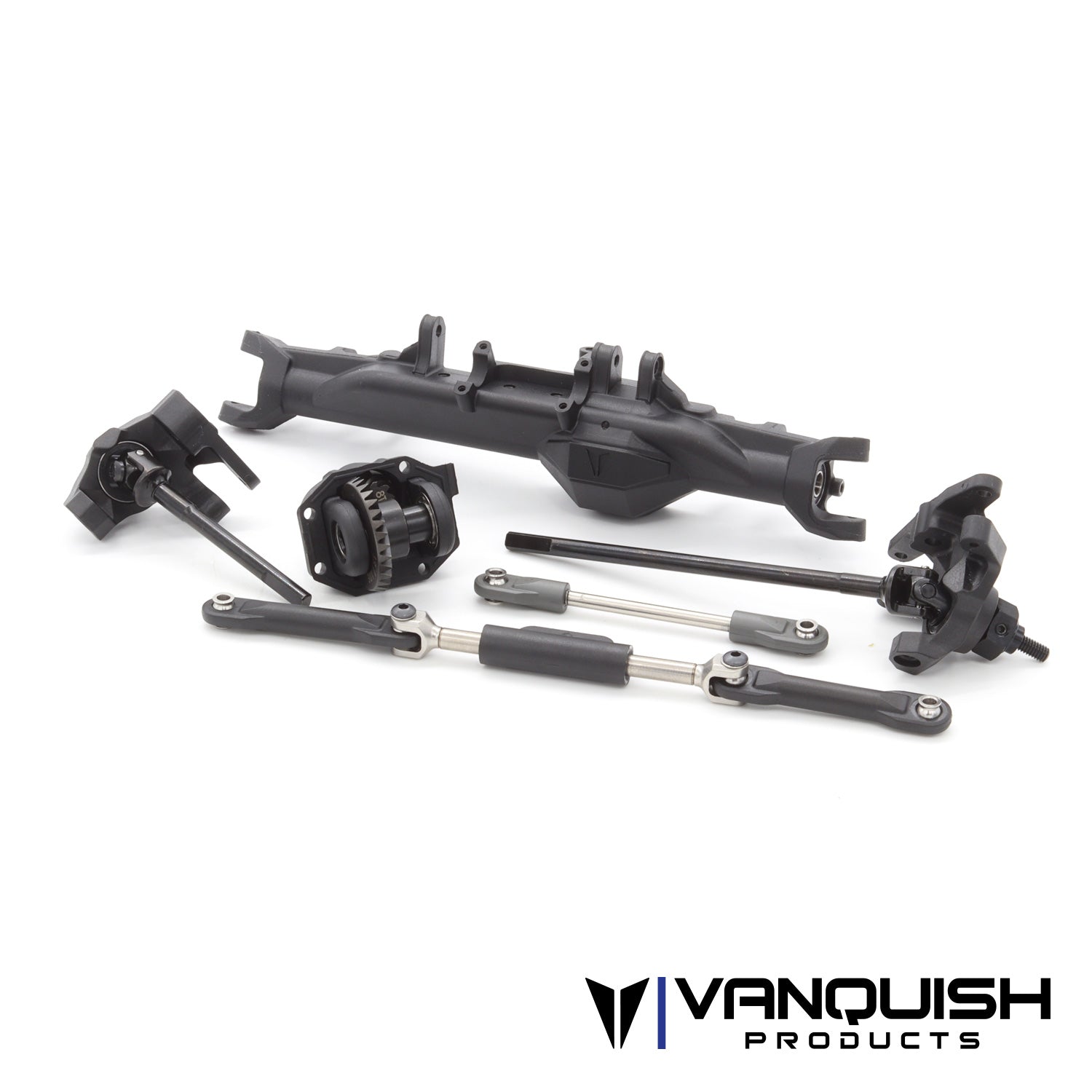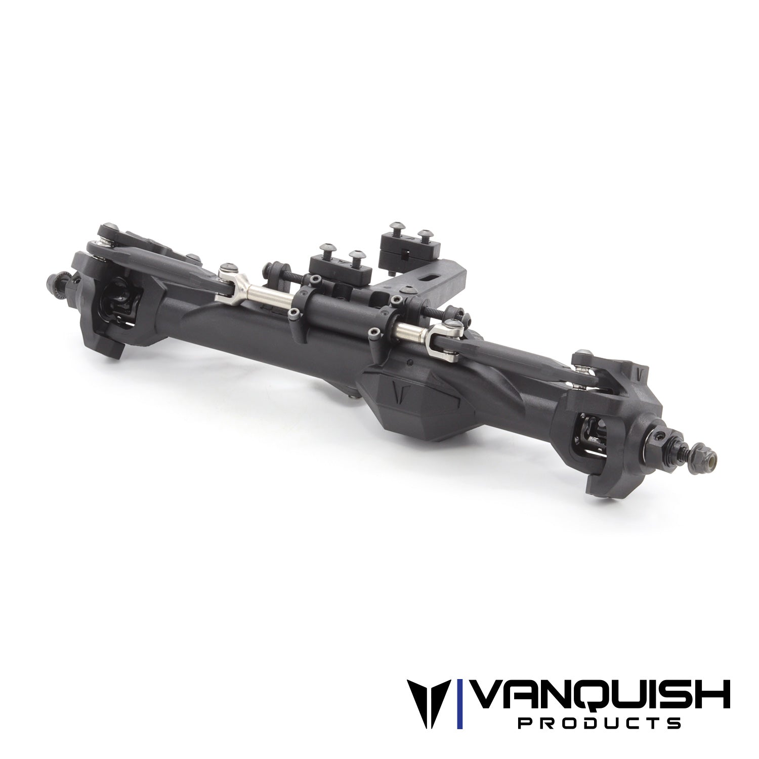 The H10 axle kit offers a complete axle package that brings performance and style to your build. The plastic molded H10 axles feature an ultra rigid design that is made to run 4-link suspension with the behind the axle servo mount. The simulated hydraulic ram replaces a traditional tie rod and gives the appearance of hydraulic steering like is used on extreme full-size offroad buggies.