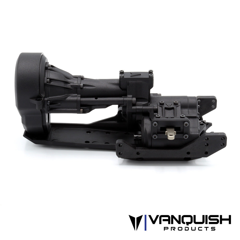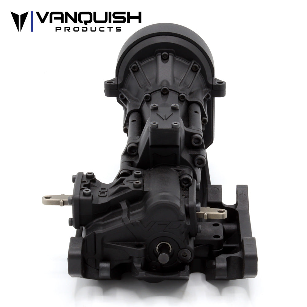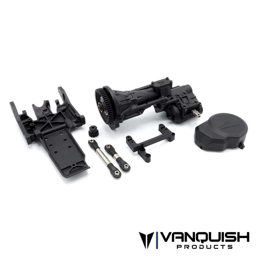 The VFD Twin Transmission (Patent Pending) kit is an evolution of the original VFD. Taking the same balance of performance, scale appearance, strength, and adding industry first features. The VFD Twin comes equipped with selectable overdrive and rear dig. Twin shifting transfer case utilizes replaceable bearing plates, a brass pivot for the shift arms, and chromoly shift slides. Borrowing from our proven Hurtz dig, the VFD twin shifting is smooth and reliable. On the fly overdrive shifting from 6.5% to 46% makes an immediate change to the driving characteristics and tuning options. The VFD Twin transmission places the motor forward and as low as possible. Compatible with 540 brushed and brushless motors*